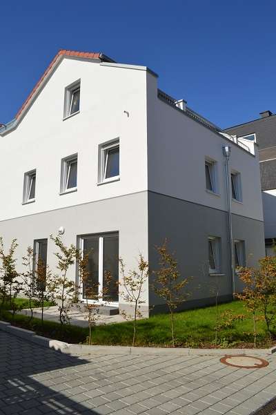 Großzügiges, modernes und bezahlbares Eigenheim gemäß Energieeinsparverordnung (EnEV)– Ihre Zukunft in großzügiger Wohnatmosphäre ganz auf Ihre Bedürfnisse angepasst. Ohne Maklercourtage direkt vom Bauträger! Wir bieten ihnen hier zwei moderne DHH an. Diese bieten Platz für Groß und Klein, junge Paare oder Familien mit Kindern. Die Häuser verfügen über 4 große lichtdurchflutete Zimmer, exklusives Gäste-WC im Erdgeschoss, sowie zwei Bäder. Besonderes Highlight ist der offen gegliederte Wohn- und Essbereich. Der Wohnbereich bietet mit den raumhohen, zum Garten ausgerichteten Fensterelementen ein ganz besonders großzügiges Raumgefühl. Eine großzügige Dachterrasse nach Osten ausgerichtet mit tollem Ausblick und eine Gartenterrasse in südlicher Richtung gelegen mit etwas Grün runden das Angebot ab. Diese Doppelhaushälften sind massiv, Stein auf Stein, gebaut. Sämtliche Wohnräume werden mit einem edlen Echtholzfußboden ausgestattet. Die Beheizung der Räume erfolgt über eine Fußbodenheizung, diese ist separat regelbar in jedem Raum. Die massive Treppe ins Obergeschoss sowie Dachgeschoss erhält ebenfalls einen Echtholz Belag. Zwei PKW-Außenstellplätze, sind im Kaufpreis enthalten.